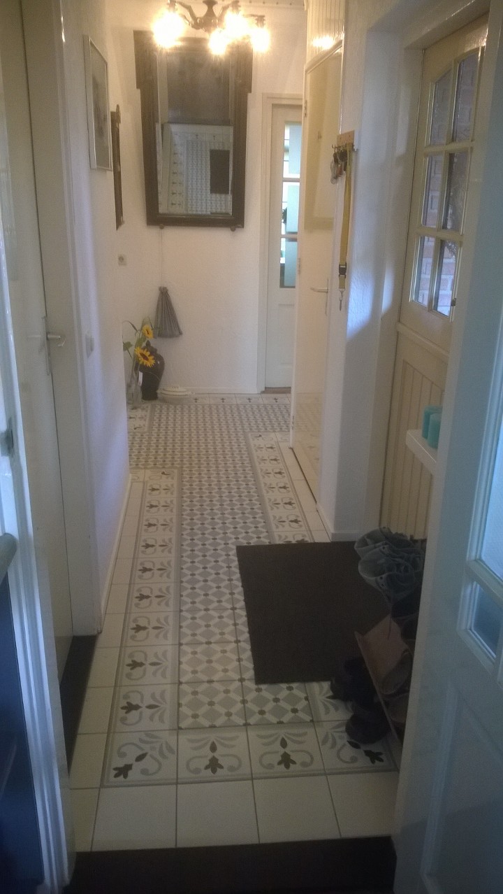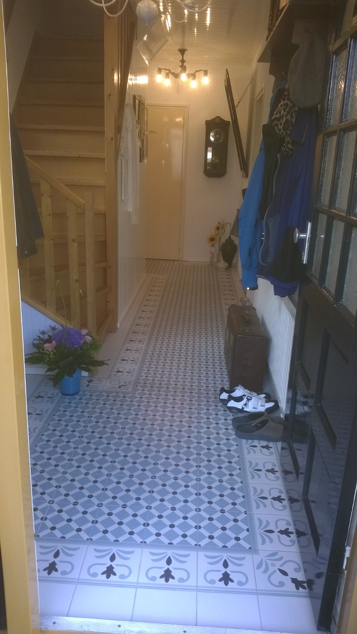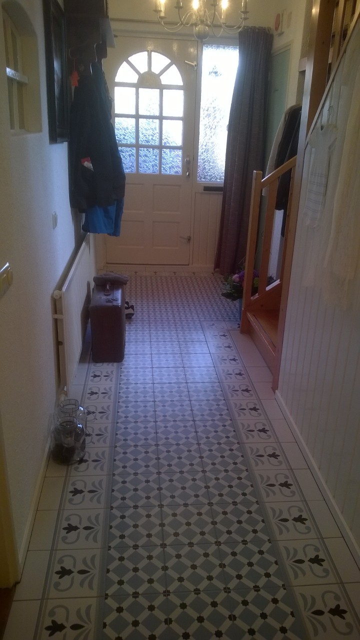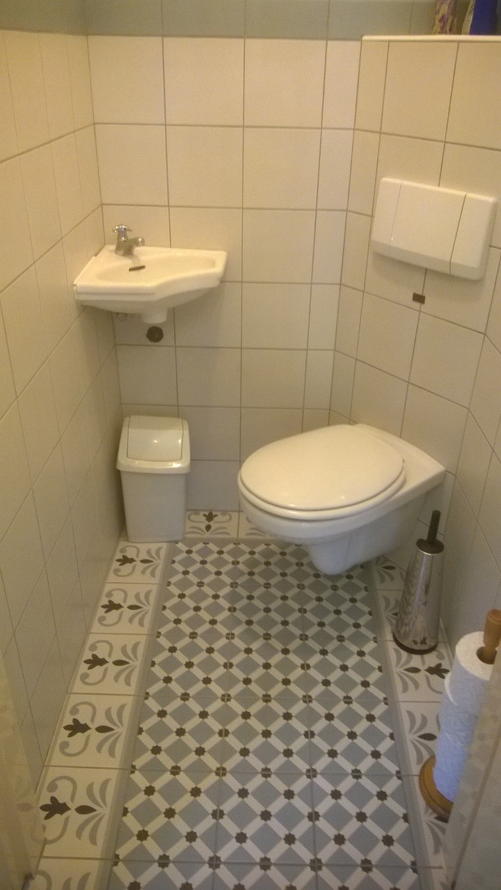 Hal en toilet met een patroontegel met rand